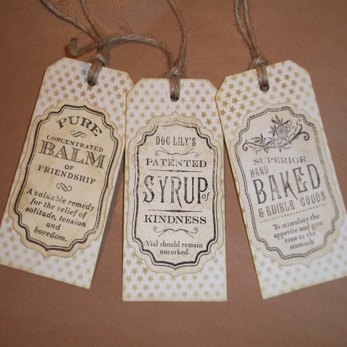 Set of 3 gift tags with hand stamped vintage style label. Each tag measures approx 12 x 6 cm and comes tied with jute string to attach to your gift.