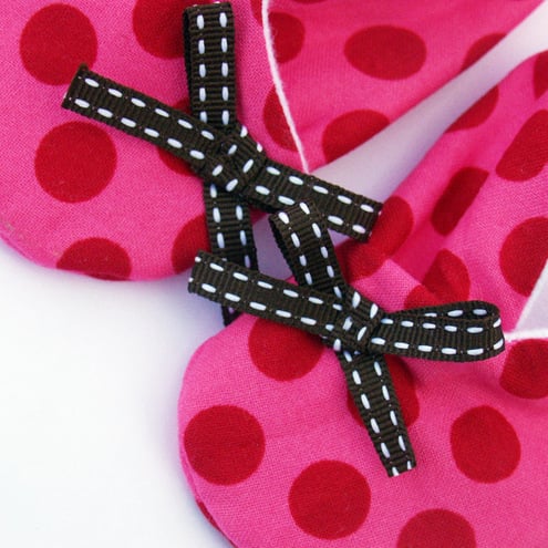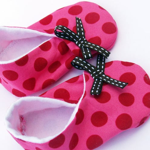 Baby shoes/booties, kimono style,size 0-6 months, red pink dots