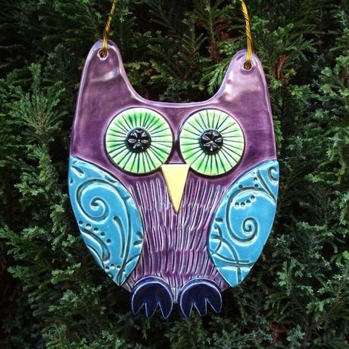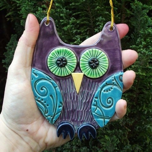 This cute ceramic owl is made from white earthenware clay with all the individual pieces hand cut and decorated.