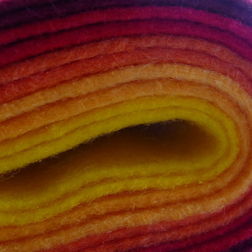 Our ‘Fiery’ pack is made up of 10 sheets of our recycled felt. Each sheet is 12" x 9" and you will get 2 sheets each of 5 different colours.