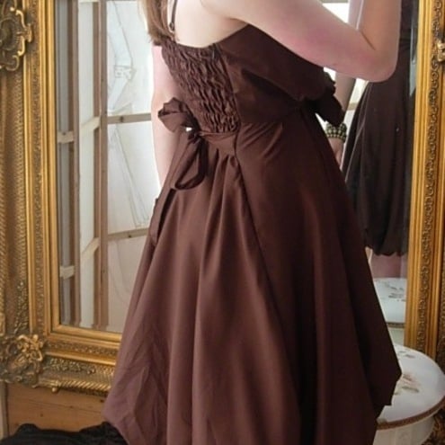 This cute little dress is so pretty (and looks great worn with a little shrug!). It has a shirred elastic back which provides stretch and comfort making it suitable for a UK size 8-12.