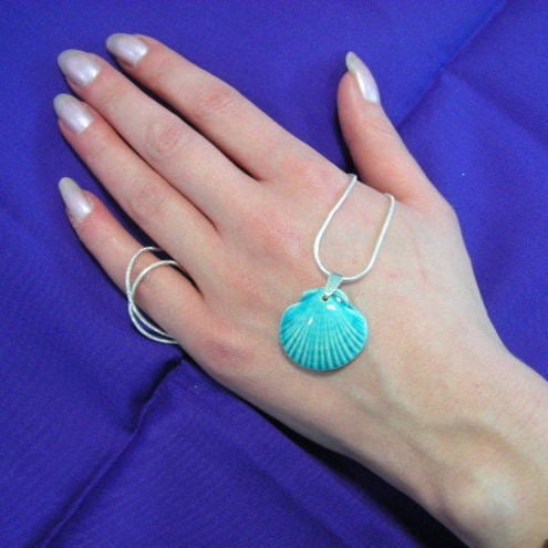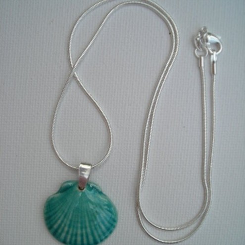 Turquoise shell pendant necklace, on sterling silver 16 inch snake chain, with sterling silver bail.