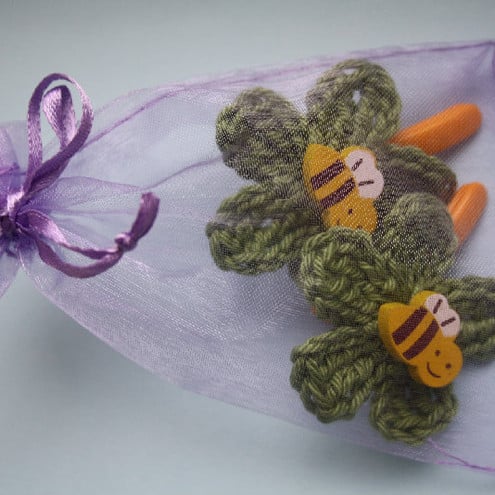 A pair of handmade, gorgeous hair clips with crochet, cotton flowers.