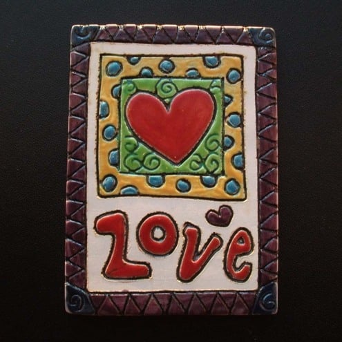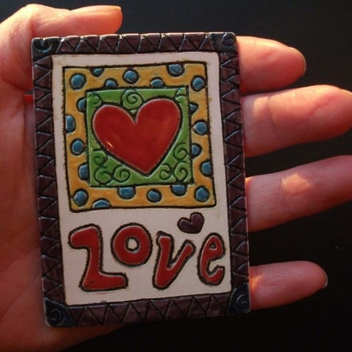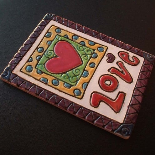 This is a tiny little ACEO ceramic tile of a heart and the word LOVE.