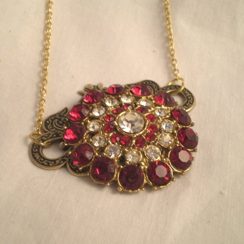 The red and clear glass crystal stones are vibrant and sparkling and would look amazing with any outfit... no other jewelley necessary.