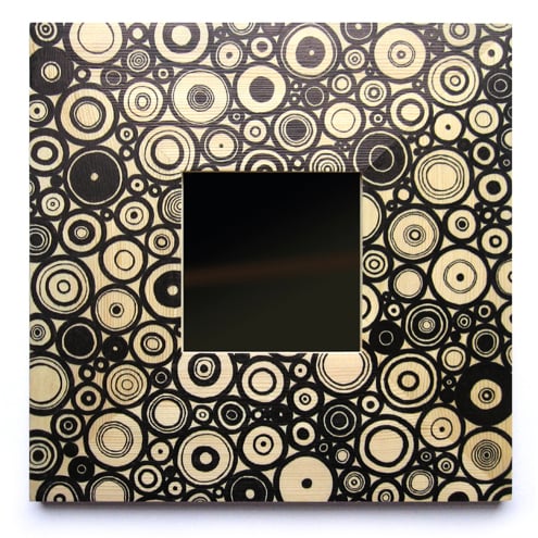 CONCENTRICITY MirrorThis 10" square pine mirror frame has been lovingly (and very painstakingly!) decorated with beautiful hand drawn concentric circles, using waterproof permanent ink. A very graphic, bold statement piece! I absolutely love this mirror and am secretly hoping it doesn’t sell, so I can keep it!Frame dimensions: 10" approxMirror dimensions: 3 3/4" approxSupplied with ‘eyelets and string’ hanging kit.All frames are wrapped with a cotton bow and ‘Dig The Earth’ tag (as shown in the third photograph), and are carefully packaged to survive in the mail!Payment by PayPal only please.
