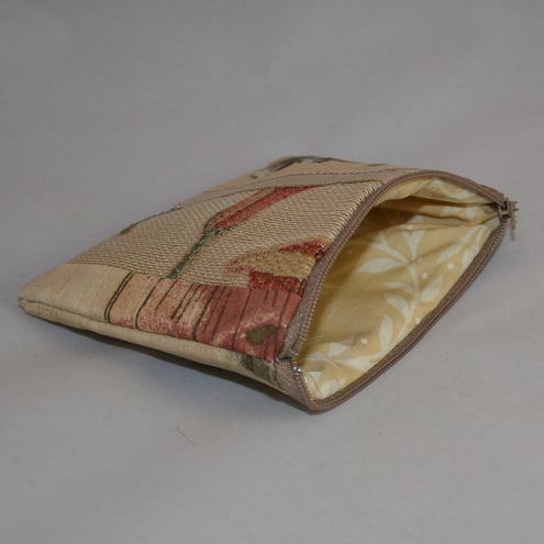 This purse nmatches the cream patchwork bag listed separately. The body of the purse is formed from a piece of patchwork stitched from cream-based furnishing fabrics.