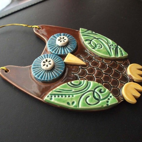 This cute ceramic owl is made from white earthenware clay with all the individual pieces hand cut and decorated.