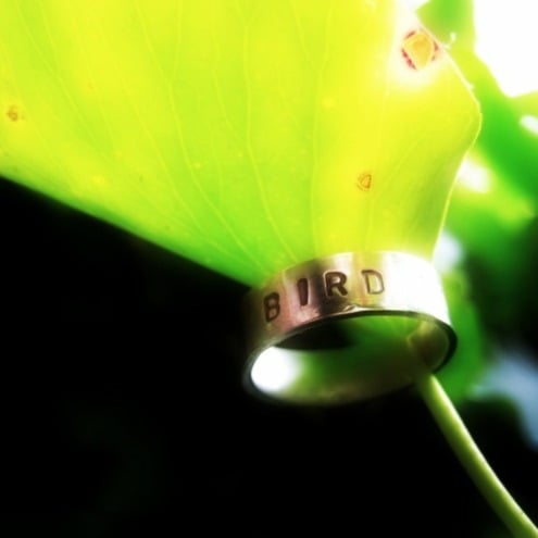 The ring pictured is inscribed with: "BIRD ON THE WIRE”