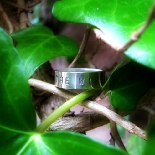 This ring can be hand-stamped with any words or dates that you would like.