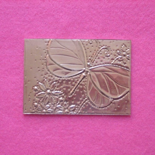 Was £6.50. now £4.50. This is a little picture of a daisy.The design has been raised on a piece of copper, which has then been polished and lacquered. Mounted on card and supplied in a protective sleeve, it measures 2.5 x 3.5ins, which is the size for collectable art or ACEO.