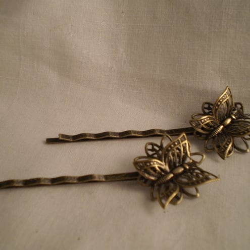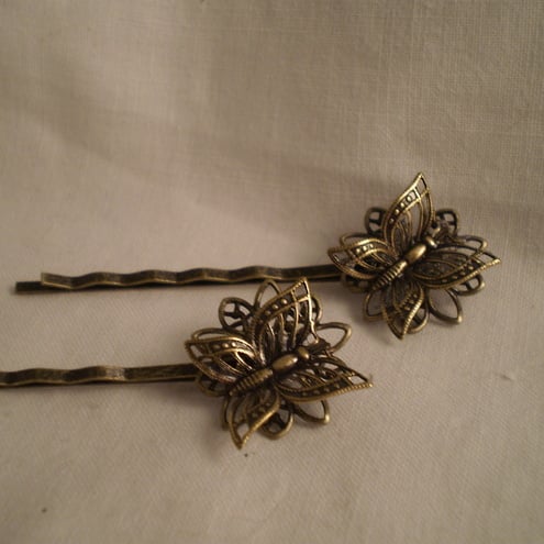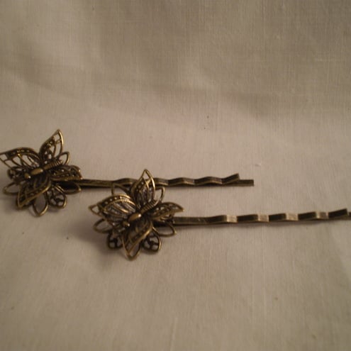 A cute pair of gold tone Butterfly hair pins/grips. A fun way to accessorize your hair.