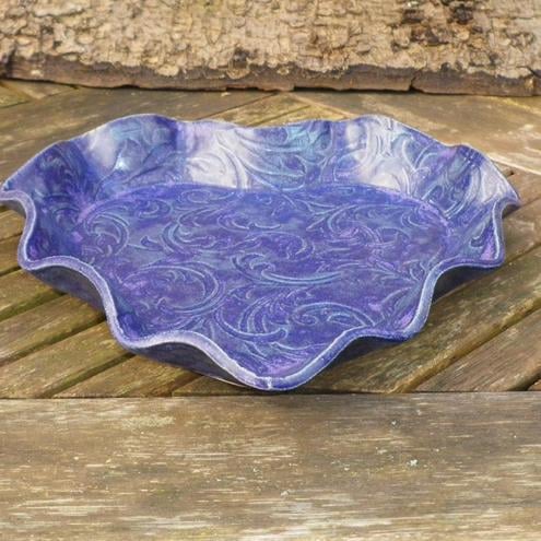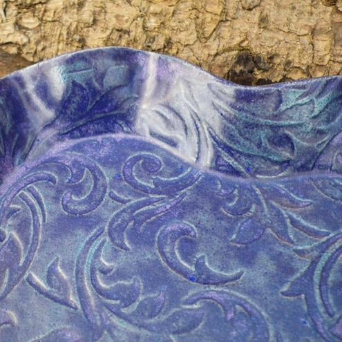 I have glazed it with a lovely semi-matt mid-blue glaze which nicely picks out the texture.