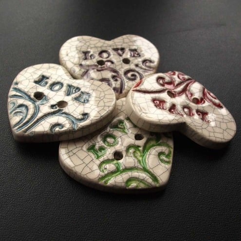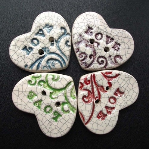 They have the word "Love" stamped onto them and they have a lovely crackle glaze for a vintage feel.