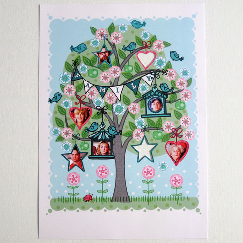 You can personalise this print as I've hand-cut 8 handy little apertures to put your own family photos behind (they're the size of large locket/ small wallet photos).