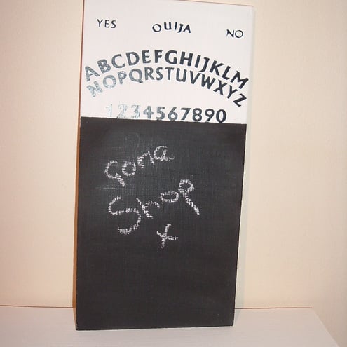 handcrafted wooden plaque/sign ready to hang with natural jute, approx 5 x 10 inch ouija design at top blackboard underneath, lovely kitchen accessory.many thanks