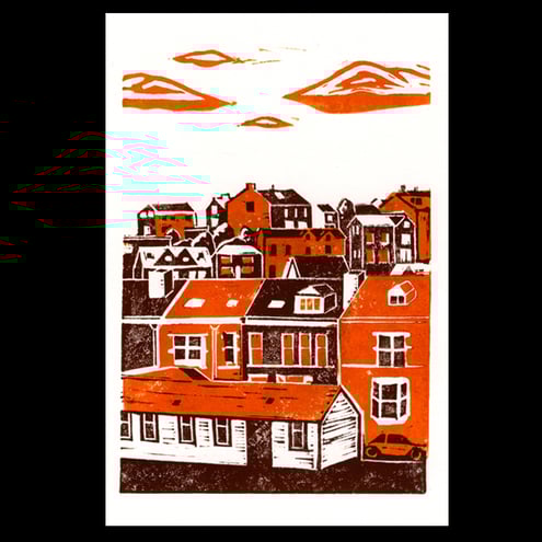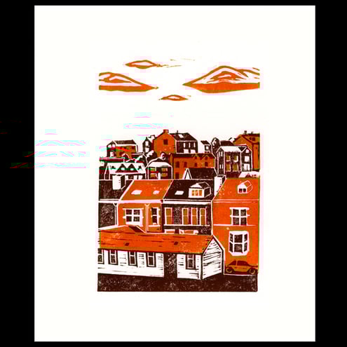 Brown and orange ink on off-white Daler-Rowney 220gsm acid-free paper. From an edition of 100, signed and numbered.