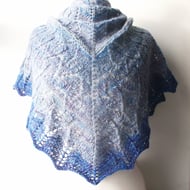 I knitted this cushion cover in two shades of pink wool in a shadow effect. I have backed it with cream poly-cotton fabric and have included a zip for easy removal for washing.