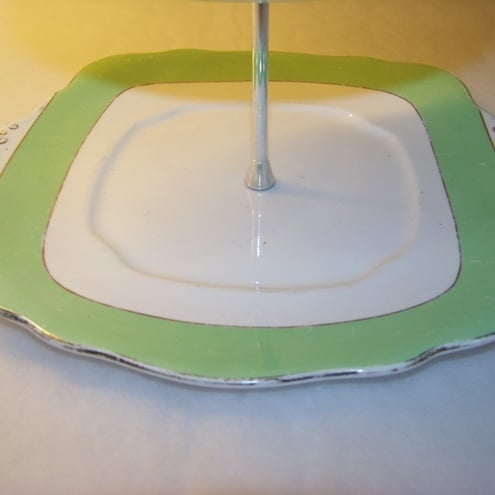 The vintage nature of these plates means that they are not perfect, they may have blemishes due to their age. This particular stand has some wear marks to the green bottom plate. However it does not effect its use or suffer visually.