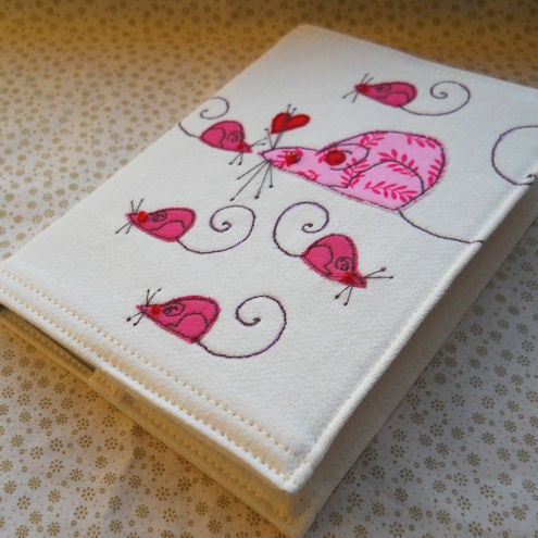 this sweet embroidered notebook features a cute pink mummy rat and all her babies on the front cover.