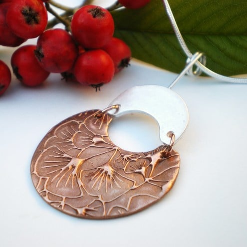 This stunning pendant is made from recycled fine silver and copper making it a great eco friendly choice.