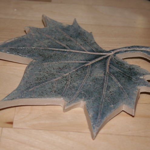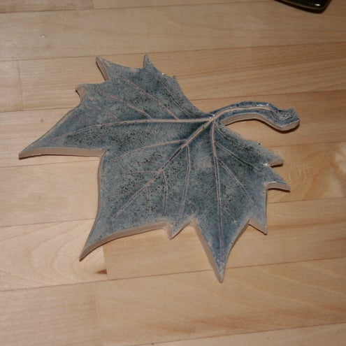 Leaf impressed stoneware tile or could be used as a coaster or a decorative item.