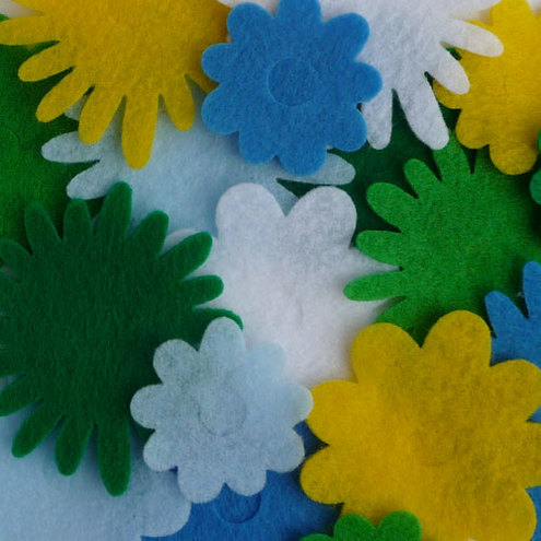36 Felt flowers, in 3 different sizes, all cut from eco-friendly, recycled craft felt. These could be used for all kinds of crafty things... Scrapbooking, collage, brooches, card making... the only limit is your imagination!