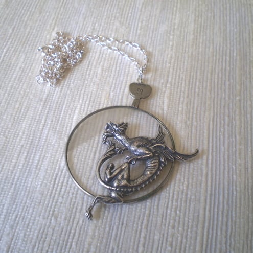 A Vintage glass optical lens has become his resting place. Sheer fantasy in a necklace.
