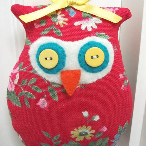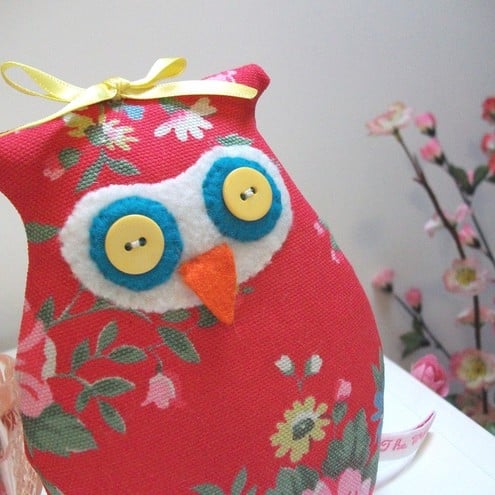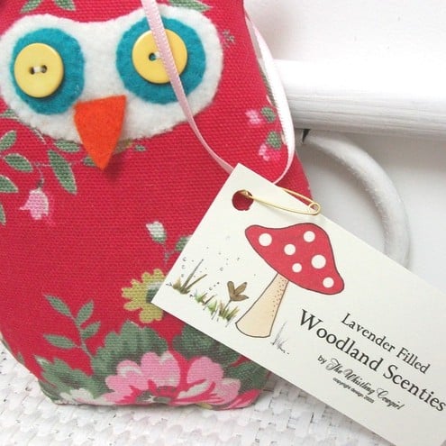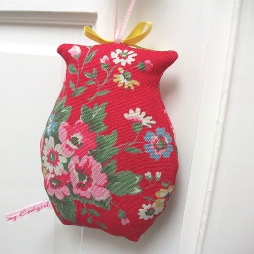 I adore this vintage look cotton duck fabric from a past Cath Kidston collection. It's called 'Folk Flowers' and I've sewn it into this sweet scented lavender owl, designed to hang in your wardrobe to scent your clothes, or to be hung as a pretty scented decoration for your room.