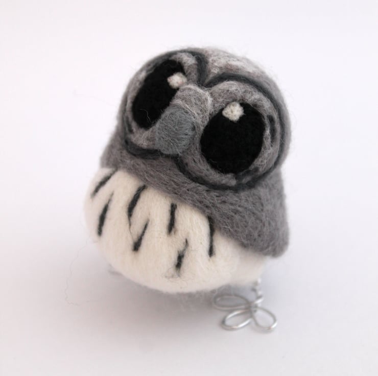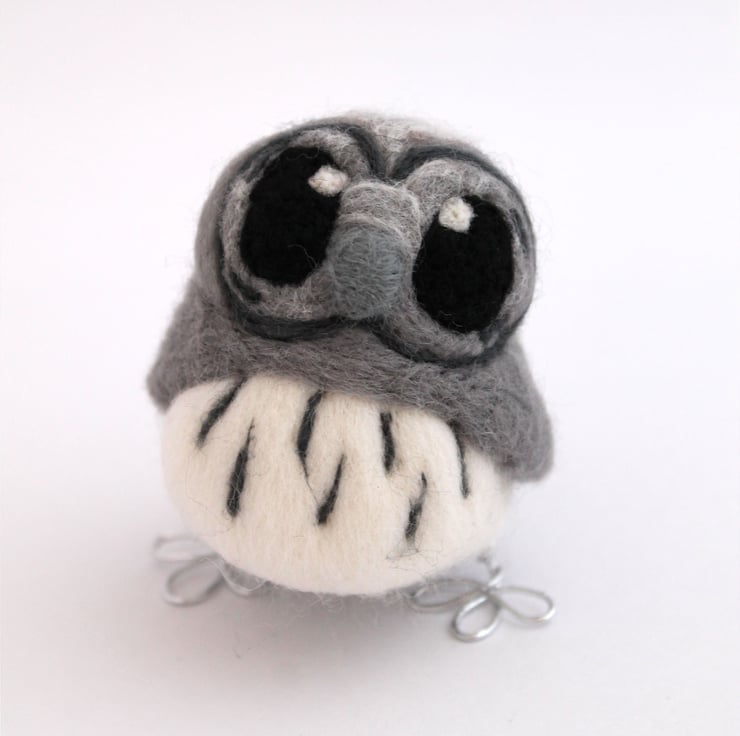 Needle Felted grey owl, owl baby. This is a lovely soft grey baby owl, with big eyes that say "take me home!"