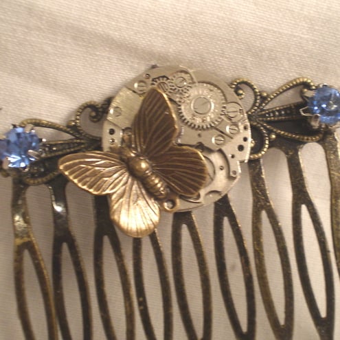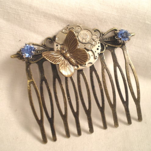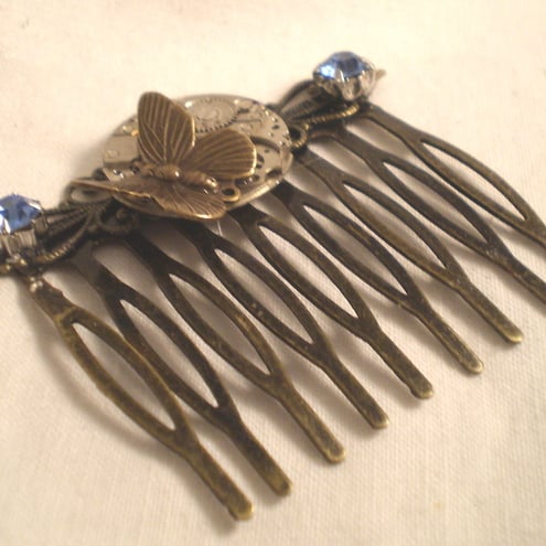 This one of a kind Steampunk hair comb has been created from an antiqued bronze finished comb, which has had a wonderful vintage watch movement added.