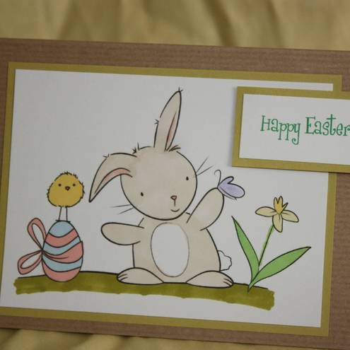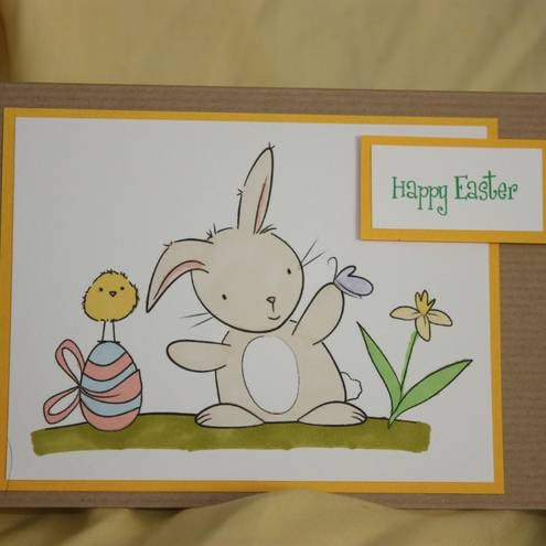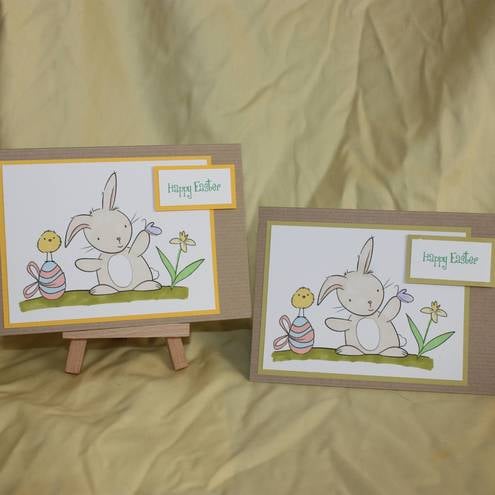 Pack of two easter cards on recycled card with matching envelopes featuring cute easter bunny image. Inside is left blank for your own message.