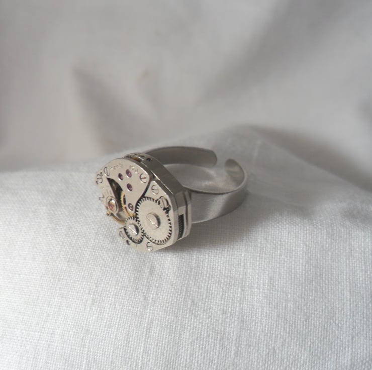 Steampunk simplicity... a beautiful vintage watch movement has been used to create this stylish ring.