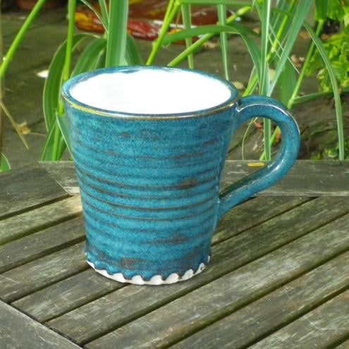 I threw this large mug on my potter's wheel using strong white stoneware clay.