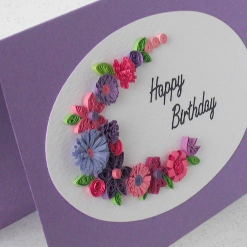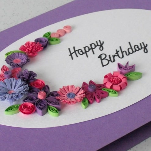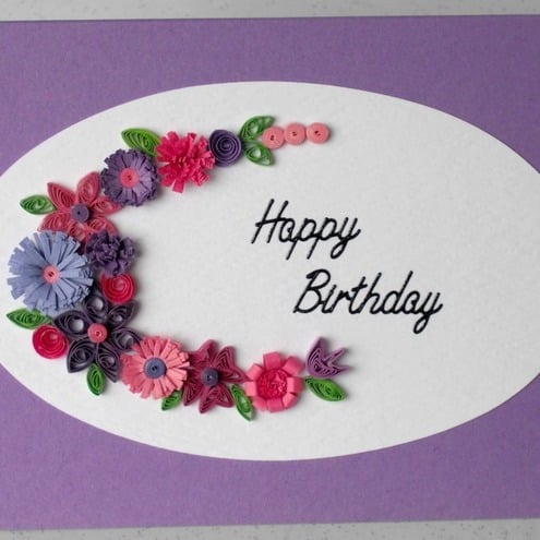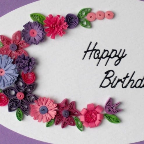 Quilled happy birthday card with quilling flowers