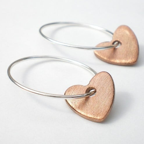 Cute little copper hearts on sterling silver hoops, the copper is recycled making them a great eco friendly choice.