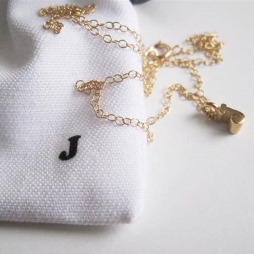 The necklace comes with a matching pouch that I have made from scratch out of white cotton twill fabric where I have also printed the initial for further personalisation. It ties with a black organza ribbon and makes the perfect present!