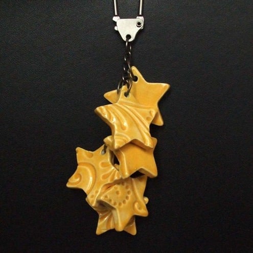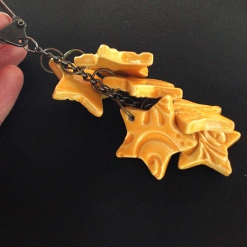 Each star has an embossed pattern on one side and a yellow glazed plain back.