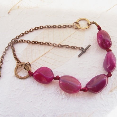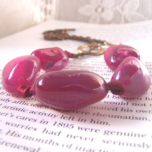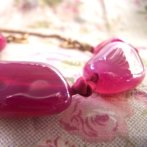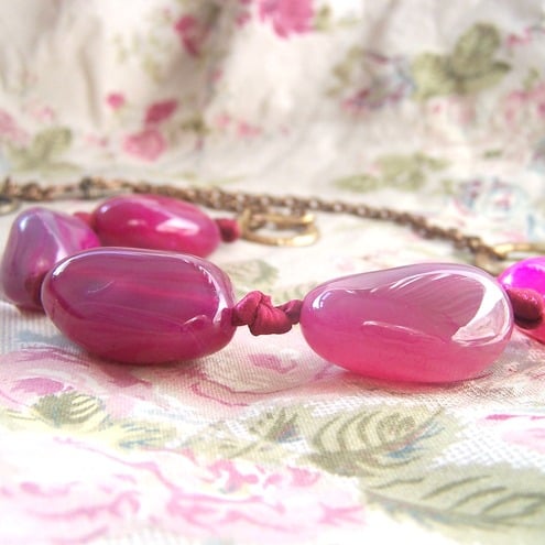 The colour of the agate is really stunning : deep fuschia pink with shades of mauve, lilac and grey which catch the light beautifully, and each one has a different natural patterning of bands and flecks.