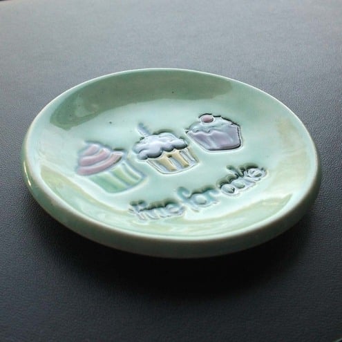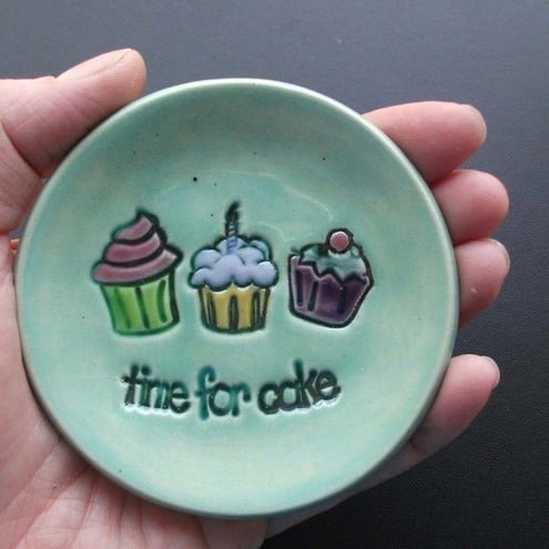 This brightly coloured plate is the perfect size for an individual cupcake or muffin.
