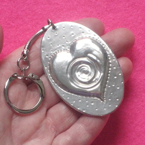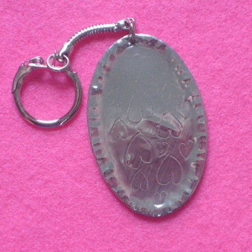 Was £6.50, now £4.50. This keyring has been hand-made in shiny modern pewter. (The design has been raised on a piece of sheet pewter, the raised area has been filled,then mounted on a rigid base) The oval measures 60 x 37mm,and is light in weight.