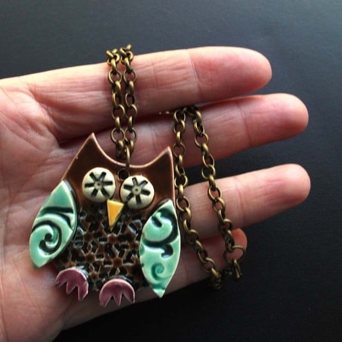 This cute little owl is made from white earthenware clay. Each piece has been hand cut, embossed, assembled and glazed. It has been twice fired to a top temperature of 1100 degrees so is nice and strong.