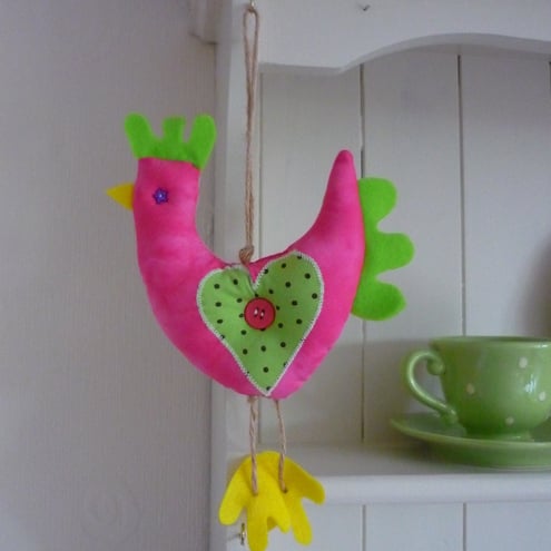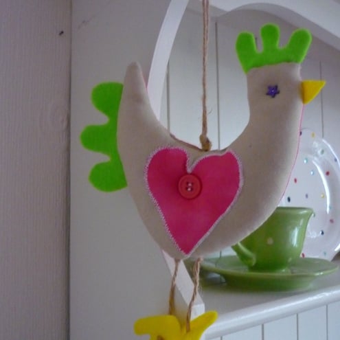 Here we have a shabby chic hanging chicken which has been lovingly handmade by me.