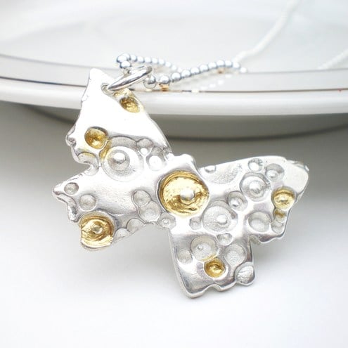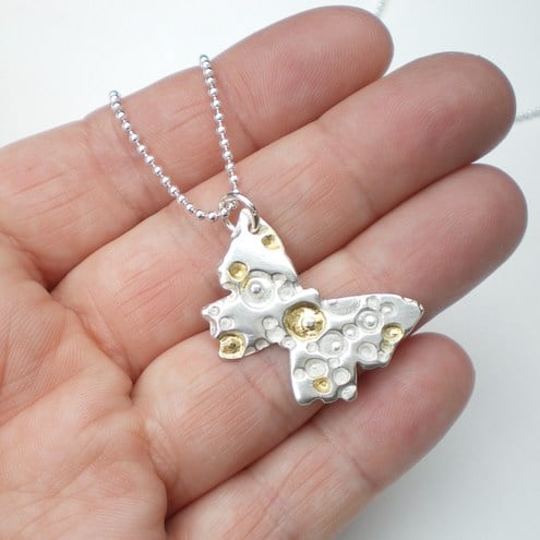 Coral textured silver and gold butterfly pendant. Inspired by nature, made from recycled silver and gold making it a great eco friendly choice.