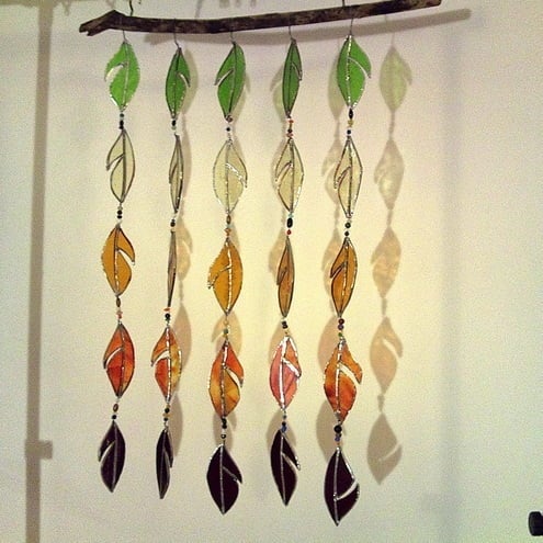 Stunning window hanging, from green, through yellow and orange to red these beautifully hand crafted leaves will take you from spring to Autumn.