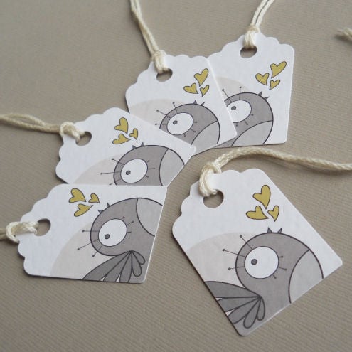 a pack of 5 tags, featuring a little brown bird singing his heart out! cute and quirky, and great to use for decorating, labelling or as gift tags. a matching greetings card is also available in my shop.