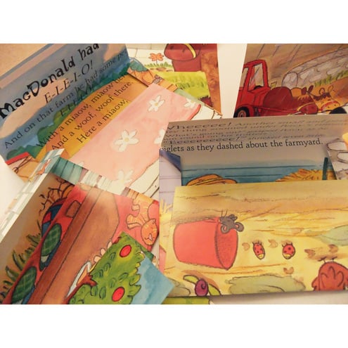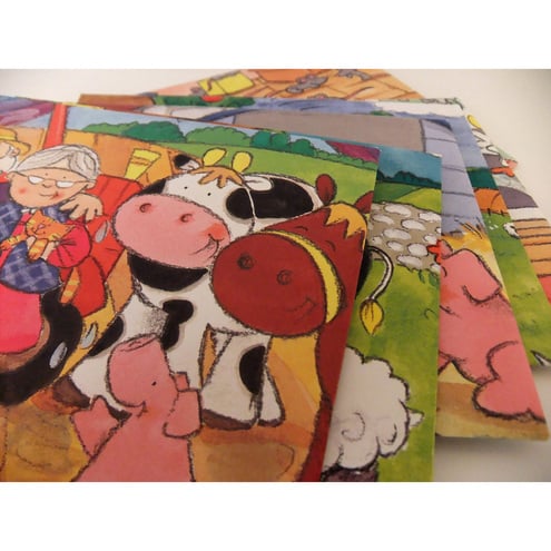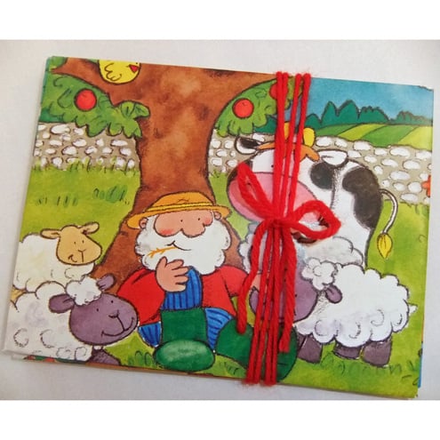 This is a set of 6 very colourful envelopes which have been made from a rescued children’s book about Old MacDonald’s farm.