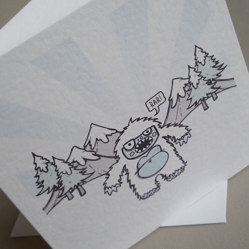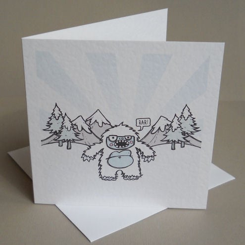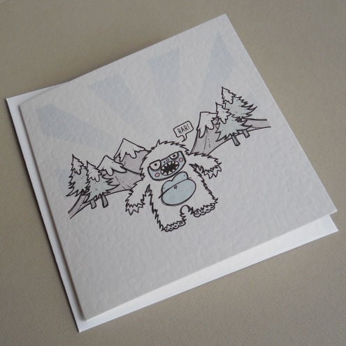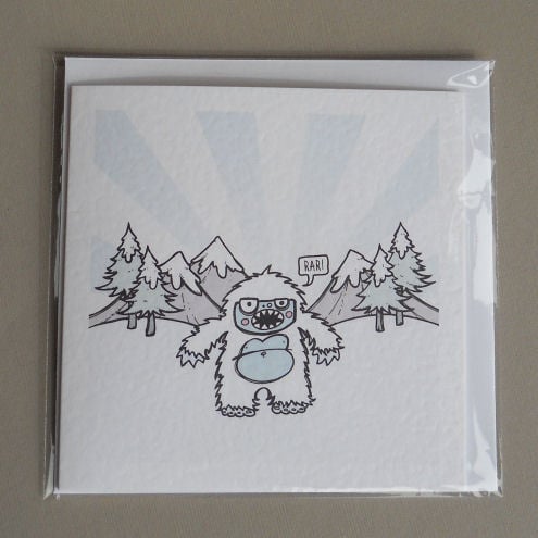 unique and quirky greetings card featuring a little yeti with something to say! he thinks he's *quite* the abominable snowman, but most folk think he's pretty cute... the poor little guy has issues.