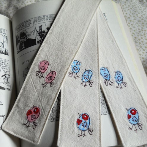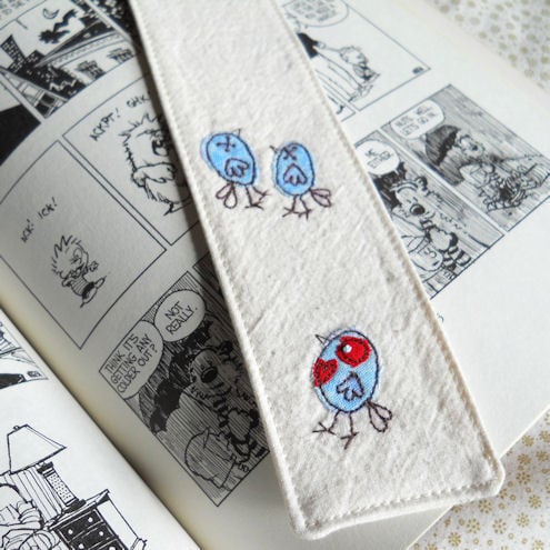 everything is cut, stitched freehand and handmade, with care, by me, ensuring each bookmark is unique, well made and securely constructed.