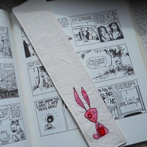 everything is cut, stitched freehand and handmade, with care, by me, ensuring each bookmark is unique, well made and securely constructed.